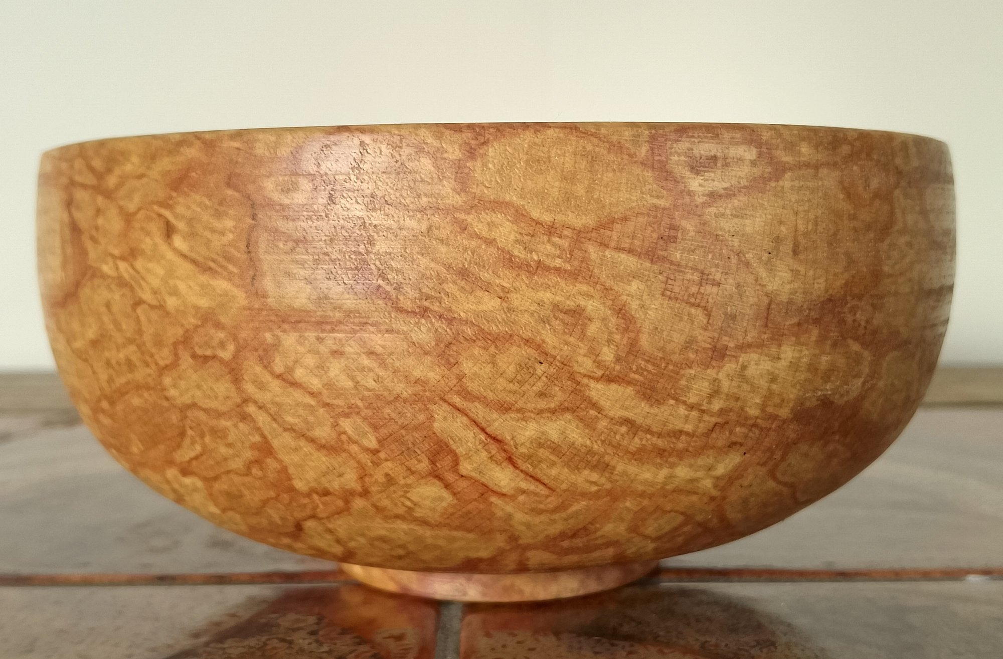 The bowls are turning on the lathe from year felled sycamore that is at its best right now, and I have gone as thin as I dare, down to 3 or 4mm thickness, giving them a light and delicate feel in the hand.