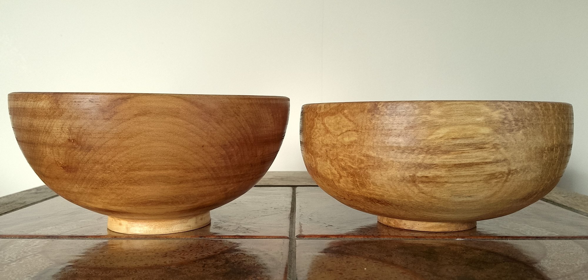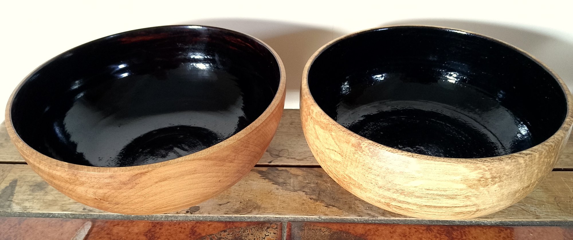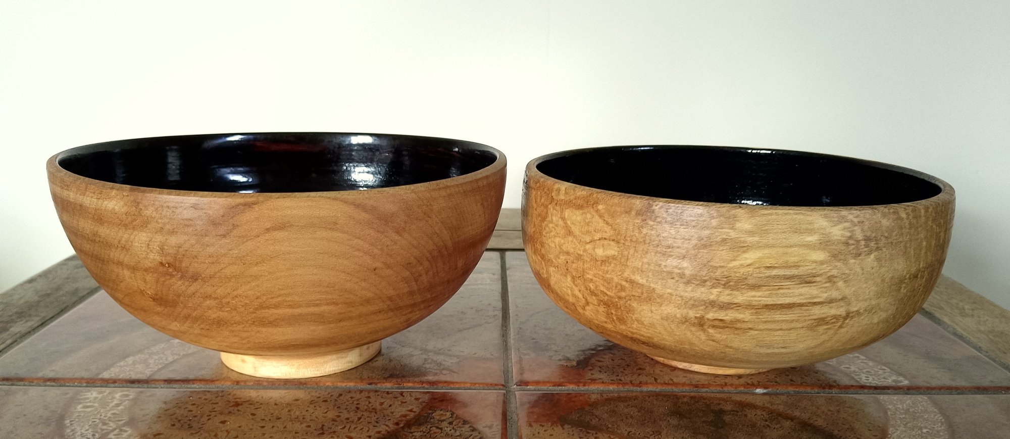 These bowls have urushi on the inside only and the wood itself has been allowed to speak on the outside..